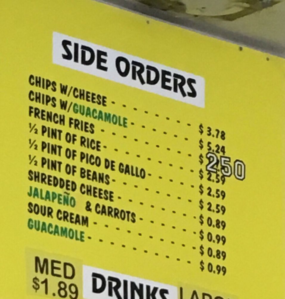 Made with lettuce, guacamole, pico de gallo, and cheese plus a "free" med drink.